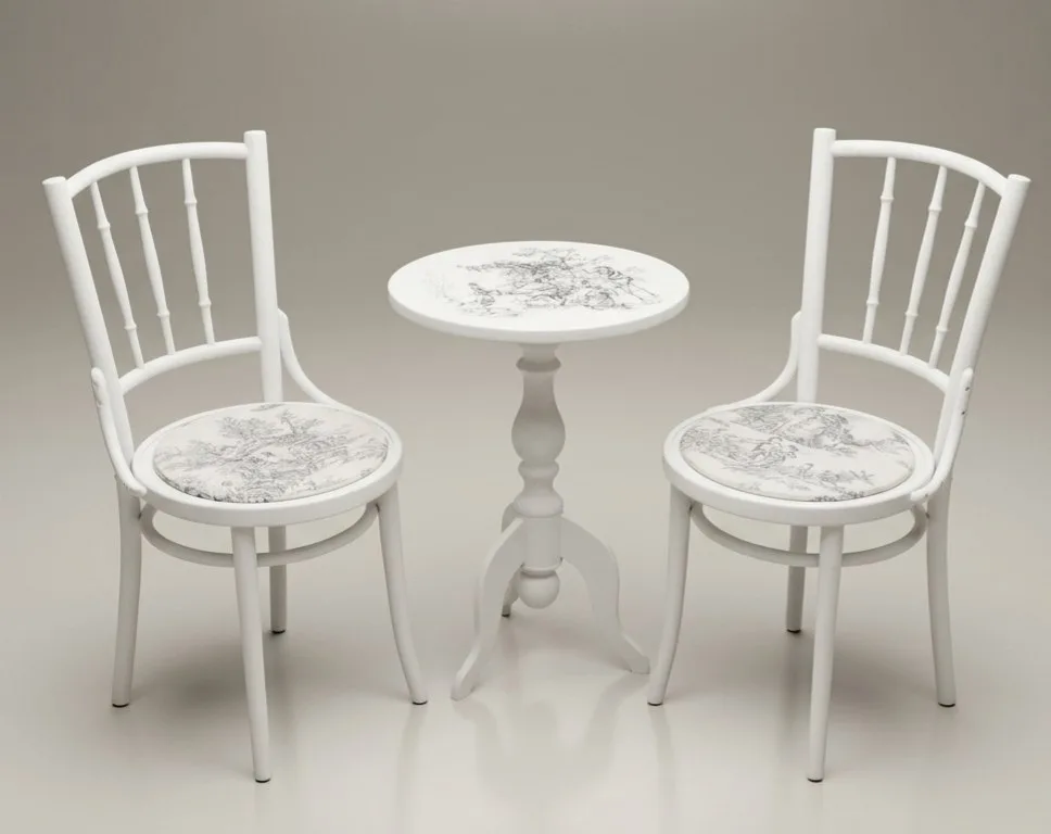 Setti: 2 tuolia ja tyylikäs pöytä. Toimitusaika on noin kaksi viikkoa. Klassinen muotoilu ja laadukas työstö.
